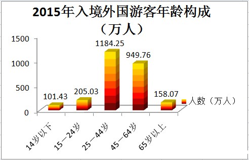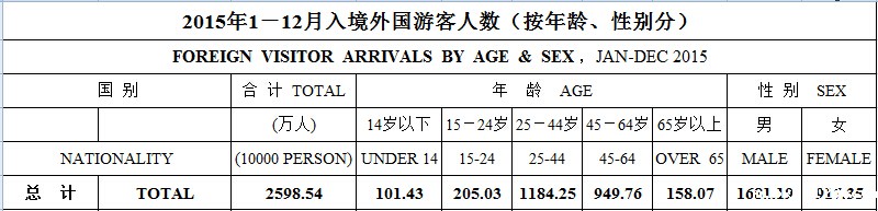 Number of foreign tourists entering China from January to December 2015 (by age and gender)