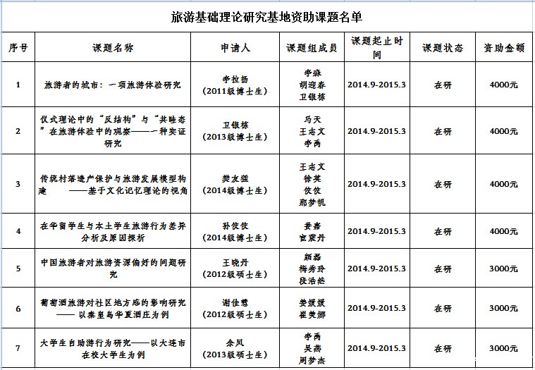 为支持我院外设研究机构旅游学科建设和人才培养,我院于2011年12月颁布《中国旅游研究院(研究生)优奖计划管理办法》,以资助在中国旅游研究院分院或研究基地所依托的教育机构正式注册并具有学籍的在读硕士和博士研究生从事科研活动、培养学生的科研能力和创新意识。