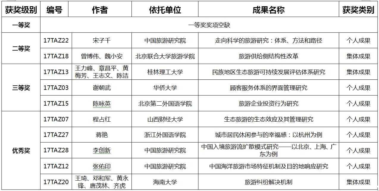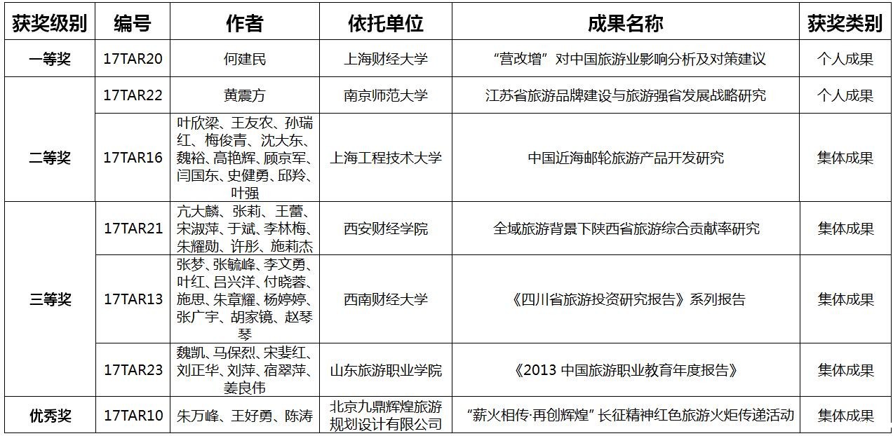 2017年文化和旅游部优秀研究成果获奖名单公布