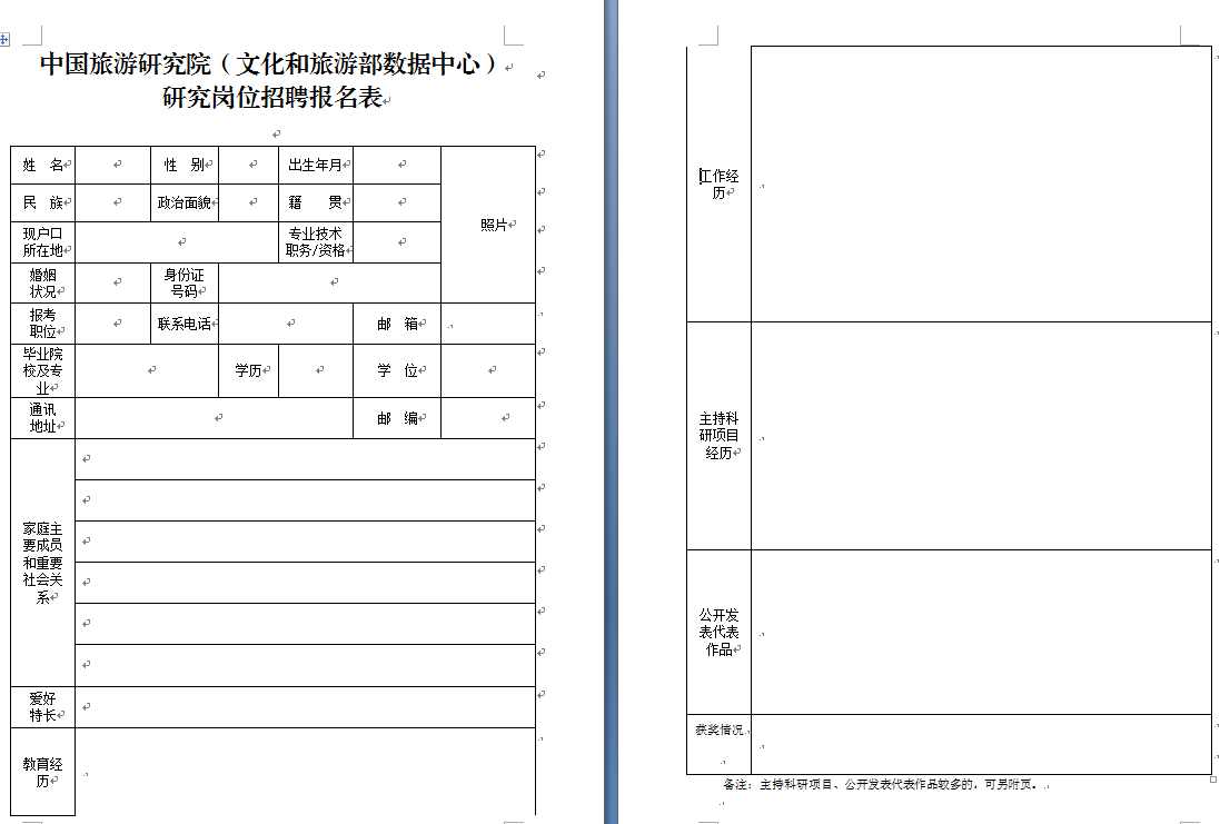 附件:中国旅游研究院(文化和旅游部数据中心)研究岗位招聘报名表