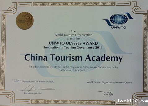5月9日联合国世界旅游组织公布了2011年联合国世界旅游组织尤利西斯奖获奖名单。我院的"全国游客满意度调查"项目获得该奖项的政府创新奖。这是国内首个获得世界旅游组织的研究奖项。国家旅游局邵琪伟局长、杜江副局长对此给予了充分肯定,认为此奖项既是一种荣誉,更是我国旅游管理创新与旅游学术成果面向世界的一次重要展示。