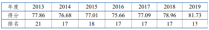 Figure 2: Satisfaction of Chinese tourists to Malaysia from 2013 to 2019