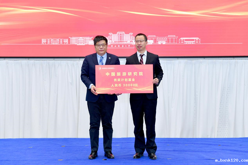 会上,中国旅游研究院院长戴斌向中国旅游研究院西部旅游发展研究基地颁授优奖基金。
