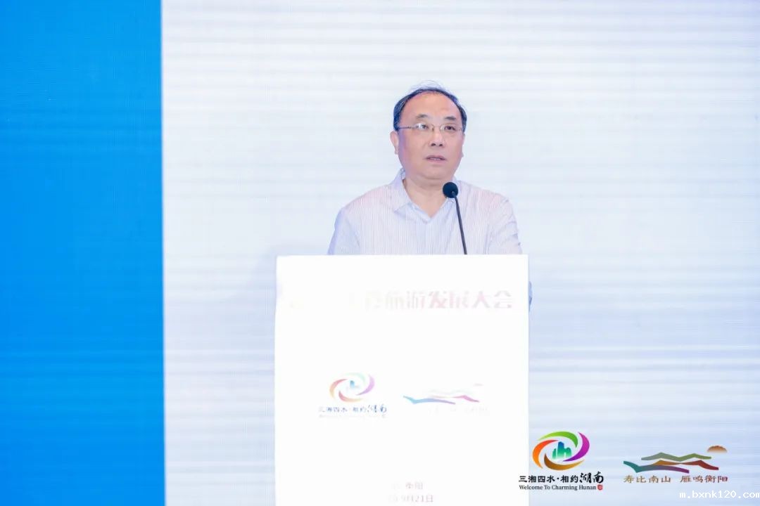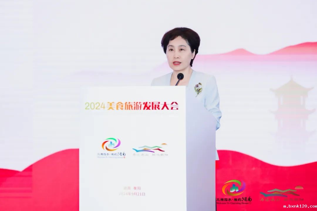 9月21日,由中国旅游研究院、湖南省文化和旅游厅、中共衡阳市委、衡阳市人民政府联合主办,湖南省旅游协会、衡阳市文化旅游广电体育局、衡阳市商务局承办,世界中餐业联合会支持举办的“2024美食旅游发展大会”在湖南衡阳举行。大会围绕“融合、创新与高质量发展”主题,通过主题演讲、成果发布、案例发布与经验分享、嘉宾对话等环节,旨在贯彻落实习近平总书记关于文化和旅游工作重要讲话和指示批示精神,贯彻落实全国旅游发展大会精神,探索“美食+旅游”深度融合创新发展路径,推动中国美食旅游高质量发展。活动由湖南省文化和旅游厅党组成员、副厅长尚斌主持。