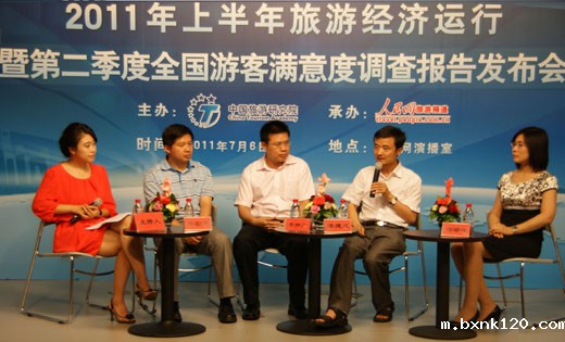 2011年7月6日,由中国旅游研究院主办、人民网旅游频道承办的2011年上半年旅游经济运行分析暨第二季度全国游客满意度调查报告发布会在人民网演播室举行。中国旅游研究院院长戴斌教授、中国经济景气监测中心副主任潘建成博士出席会议,来自新华社、经济日报、旅游卫视、中国旅游报、中国旅游网等多家媒体机构的代表及我院相关课题组成员参加了发布会。
