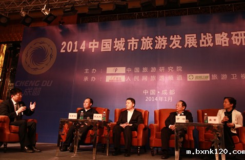 2014年1月10日上午,由中国旅游研究院主办、人民网旅游频道、旅游卫视承办的 "2014中国城市旅游发展战略研讨会"在成都召开。中国旅游研究院院长戴斌教授、山东省旅游局局长于冲、成都市人民政府副秘书长曾敏、北京市旅游发展委员会副主任安金明、四川省旅游局副局长宋铭、成都市旅游局副局长杨齐英、石家庄市人民政府副秘书长刘明亮、苏州市人民政府副市长盛蕾、洛阳市人民政府副市长张世敏、黄山市人民政府副市长周天伟、延安市人民政府副秘书长高文斌等出席了发布会。来自全国40多个旅游城市政府和旅游行政主管部门领导和业界高管、成都市旅游产业领导小组22个成员单位分管领导、成都市20个区(市)县人民政府分管领导和旅游行政主管部门负责人以及人民日报、新华社、中央电视台、中国日报、中央人民广播电台、人民日报海外版、人民网、中国网、旅游卫视、成都电视台、海蓝电视、中国旅游报、中国旅游网、成都日报等媒体机构的代表也参加了发布会。