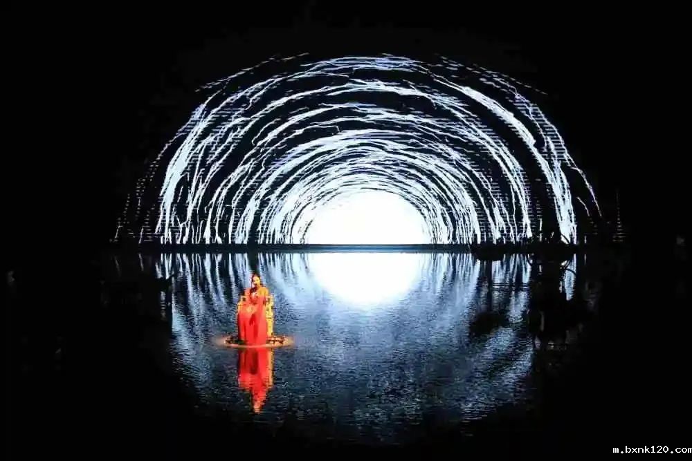 36扇高大的雕花木门轻启,演员曼妙起舞;舞台上光影变幻,不时落下层层水帘……“太震撼了!”观众们不约而同发出感叹。