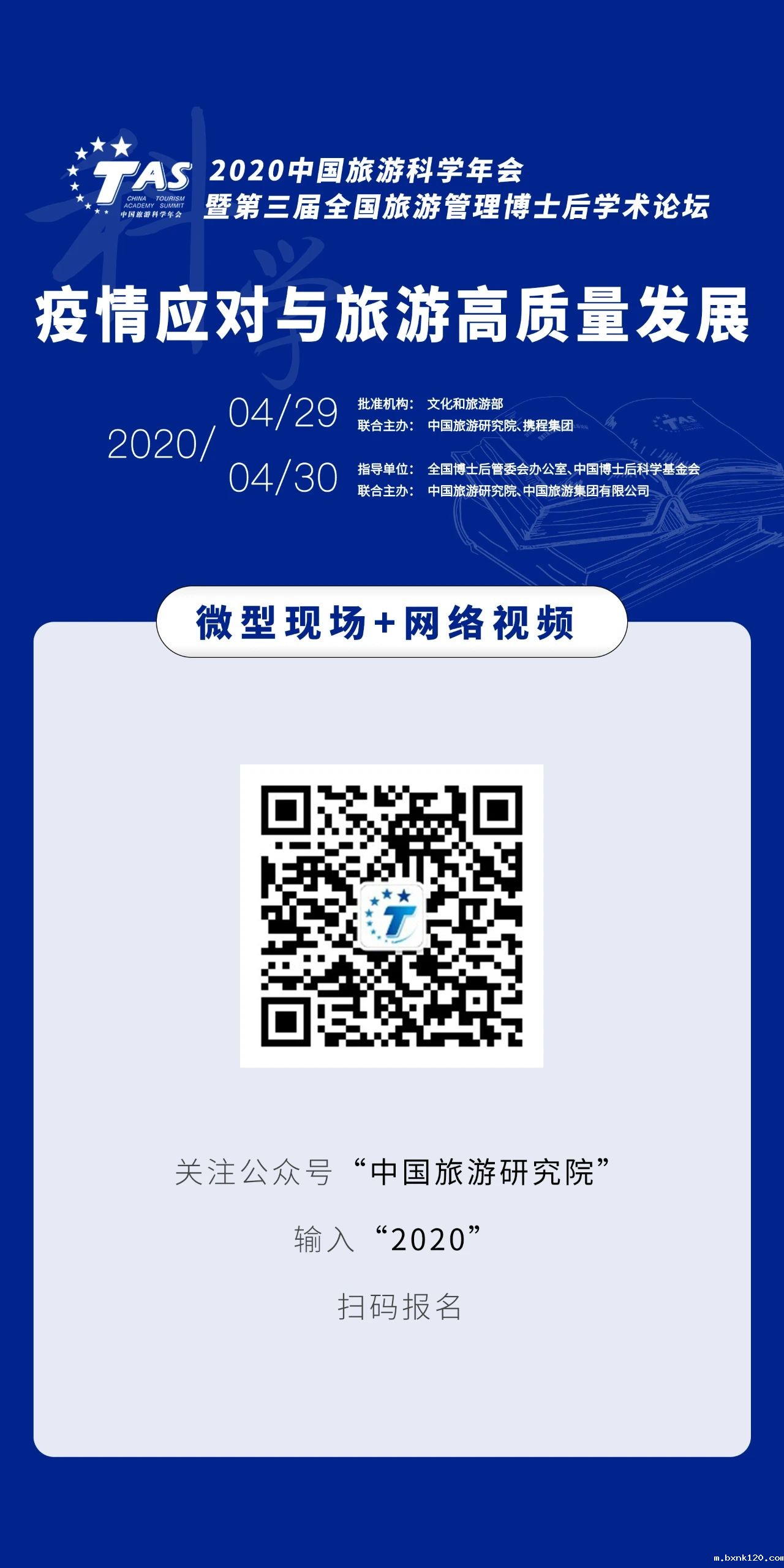经文化和旅游部批准,由中国旅游研究院与携程集团联合主办的“2020中国旅游科学年会”将于4月29-30日在线召开。 文化和旅游部党组书记、部长雒树刚将出席开幕式并讲话。 由全国博士后管委会办公室、中国博士后科学基金会担任指导单位,中国旅游研究院、世界杯直播网有限公司共同主办的“第三届全国旅游管理博士后学术论坛”也将同期举行。