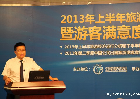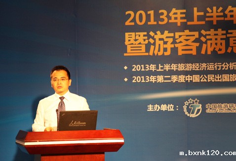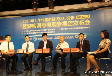 2013年7月11日由中国旅游研究院主办,人民网旅游频道、旅游卫视协办的2013年上半年旅游经济运行分析暨游客满意度调查报告发布会在人民网演播室举行。中国社会科学院旅游研究中心主任张广瑞研究员、北京市旅游发展委员会旅游环境与公共服务处处长王清、海航旅业战略与发展创新部总经理孙金伟先生、易生旅游旅游发展事业部总经理郑黎东、中国旅游研究院产业所所长李仲广副研究员等出席了发布会。来自人民日报、新华社、中央电视台、中央人民广播电台、中国国际广播电台、中国旅游报、经济日报、大公报、央视网、中国网、新浪网、搜狐网等媒体机构代表也参加了发布会。